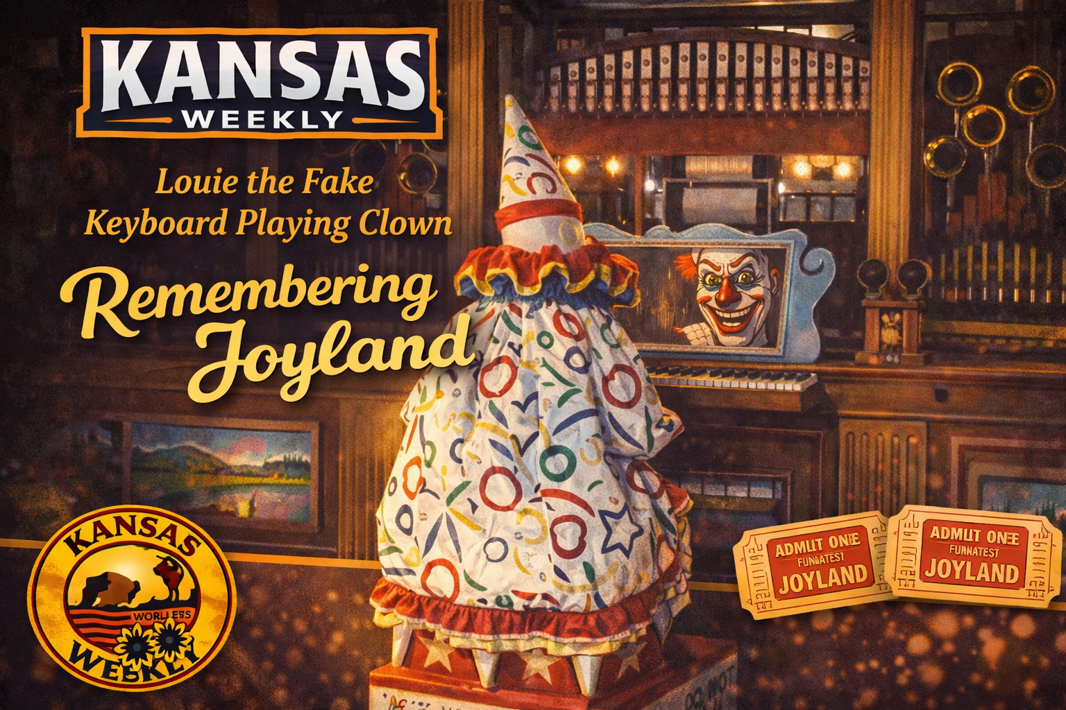 One of the most memorable icons of Joyland Amusement Park in Wichita, Kansas was Louie the Clown: an animatronic clown figure that played a Wurlitzer organ near the park entrance and became a beloved (and slightly eerie) symbol of Joyland’s history. He literally gave me nightmares. He just sat there emotionless and moved his hands side to side, like a sadistic version of Pennywise just waiting to claim his next victim.